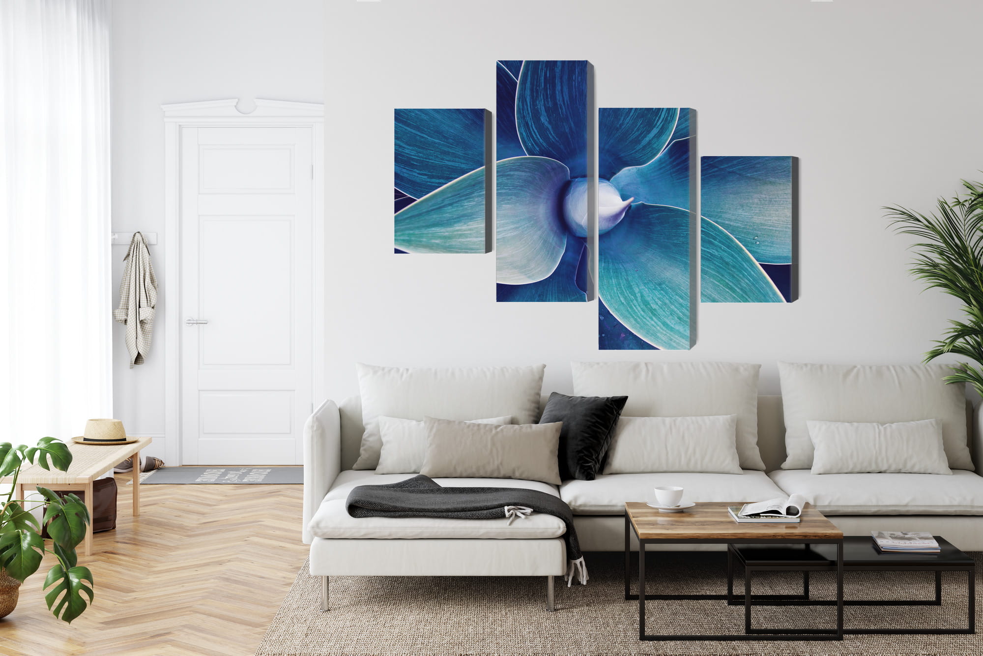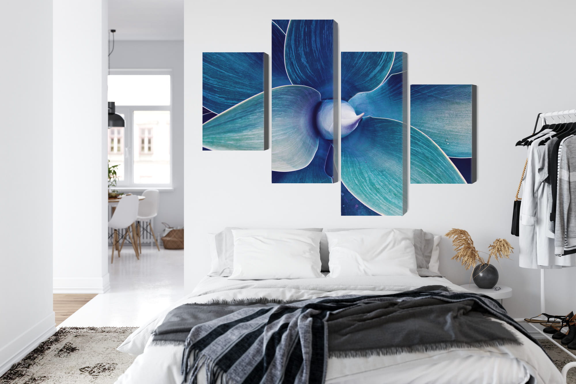 Canvas naturalny to płótno bawełniane o wysokiej gramaturze wynoszącej 260 g/m2 specjalnie przygotowane do zadruku. Powierzchnia materiału jest biała, ma strukturę tekstylną. Połączenie struktury materiału z fotograficzną jakością wydruku lateksowego tworzy niepowtarzalne dekoracje do każdego wnętrza. Po zadruku i wycięciu, płótno naciągane jest na krosno z prawdziwego drewna sosnowego. Tak przygotowany produkt jest gotowy do powieszenia na ścianie. W pełni naturalny i ekologiczny.