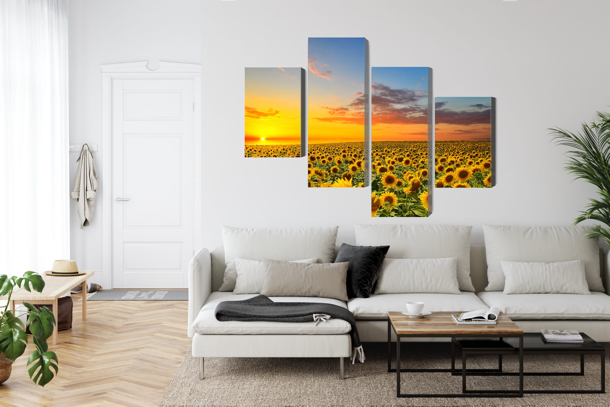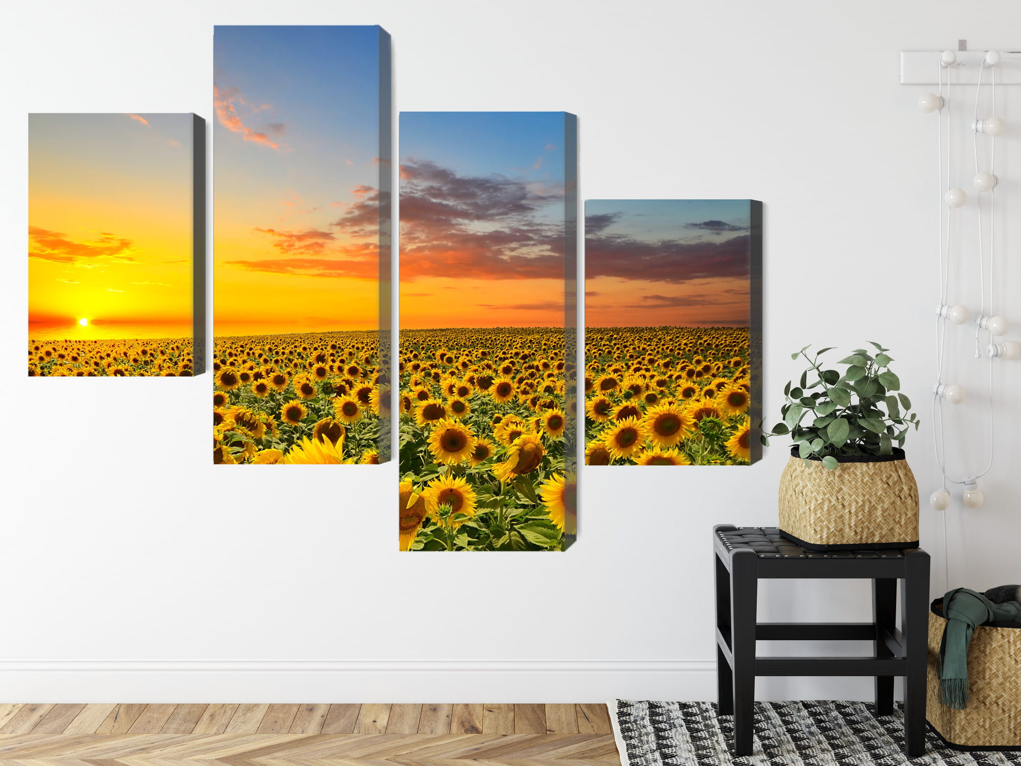 Obraz Wieloczęściowy Zachód Słońca Nad Polem Słoneczników 3D