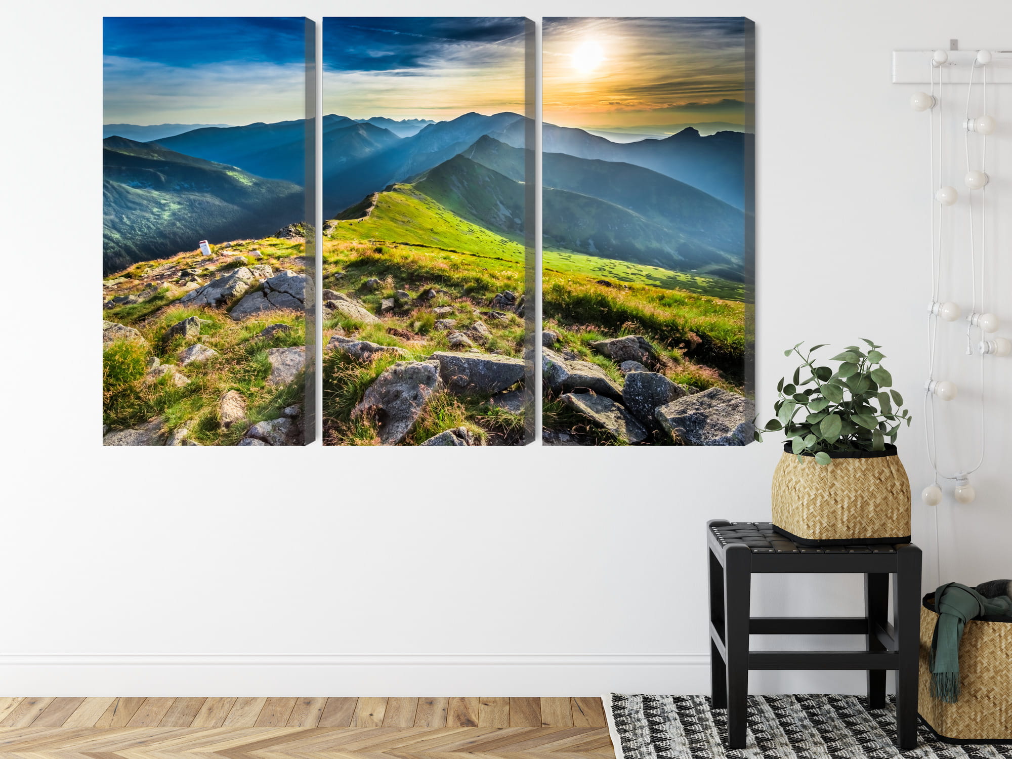 Obraz Wieloczęściowy Zachód Słońca W Górach 3D