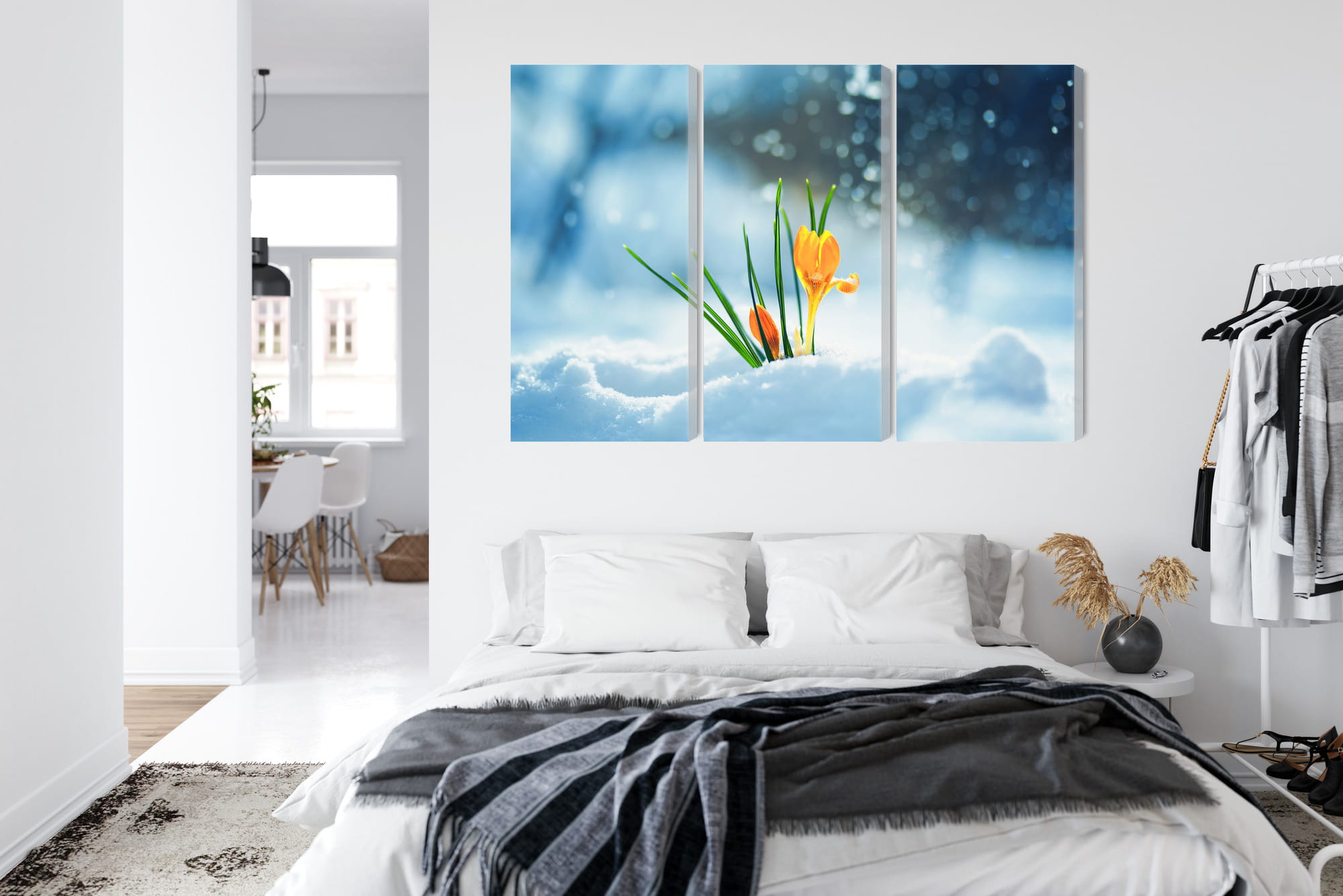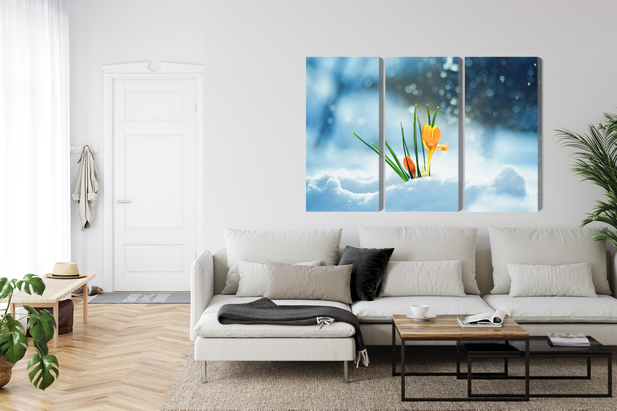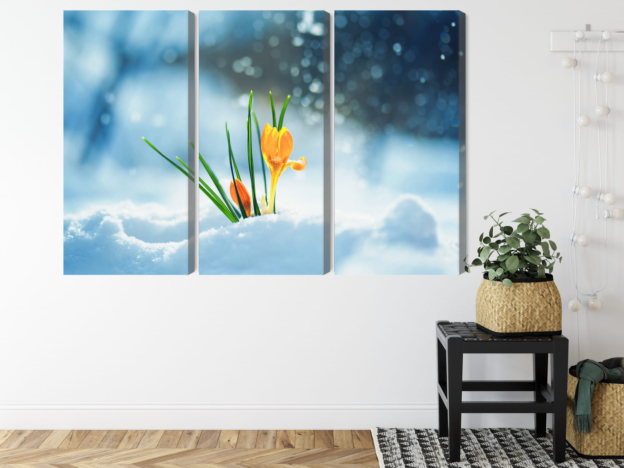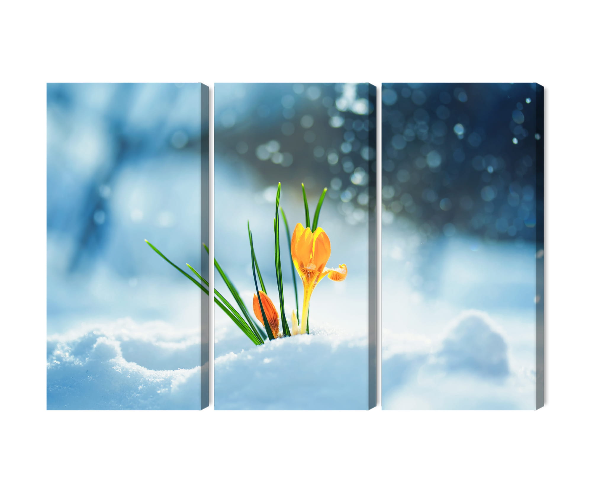 Obraz Wieloczęściowy Żółte Krokusy Przebijające Się Przez Śnieg