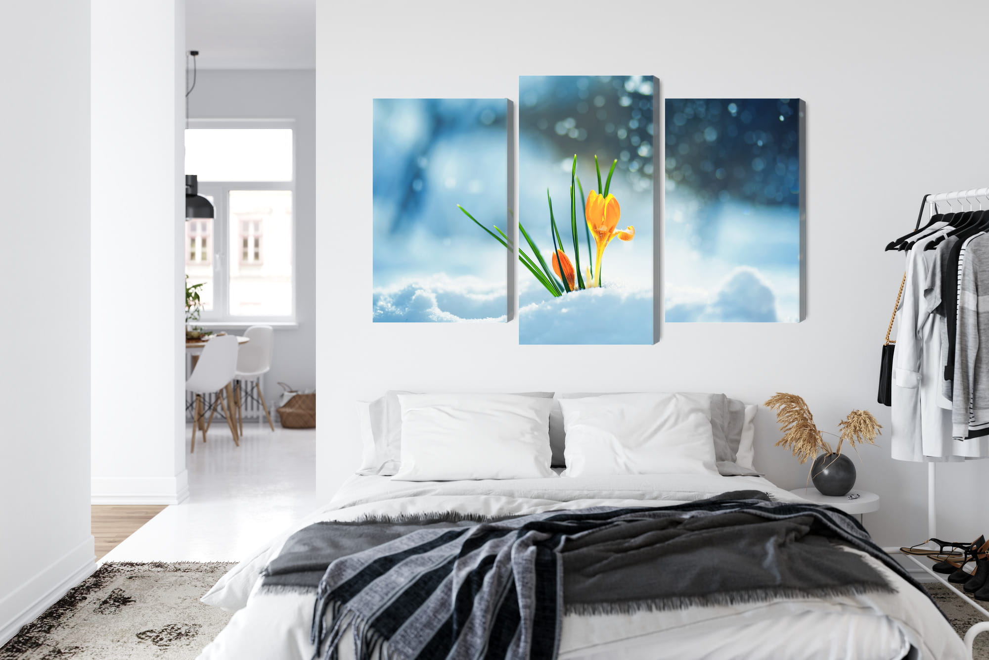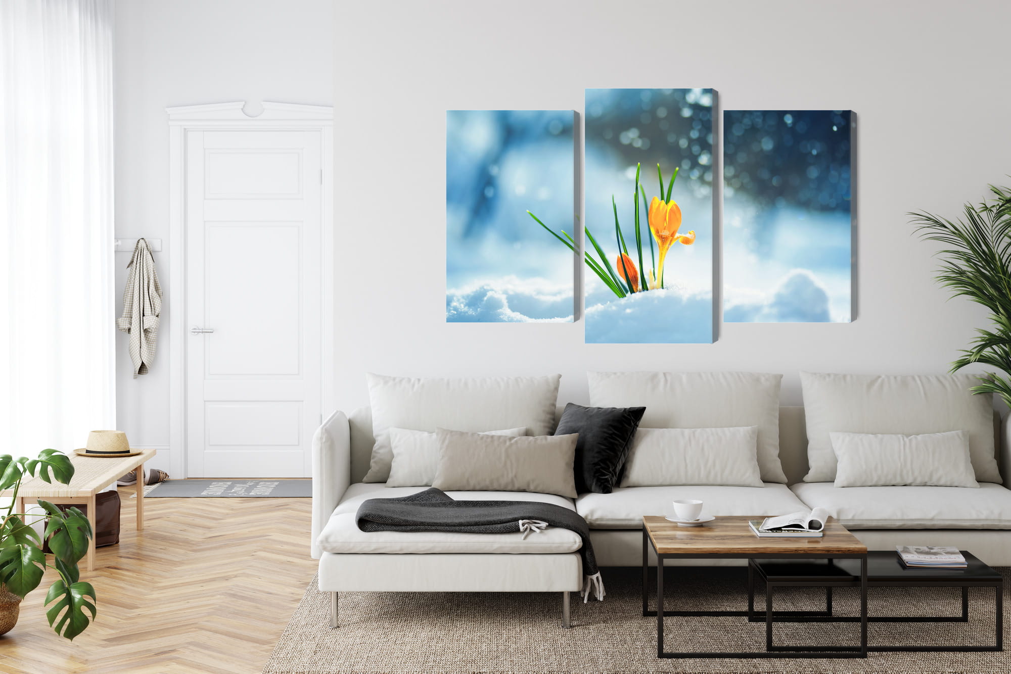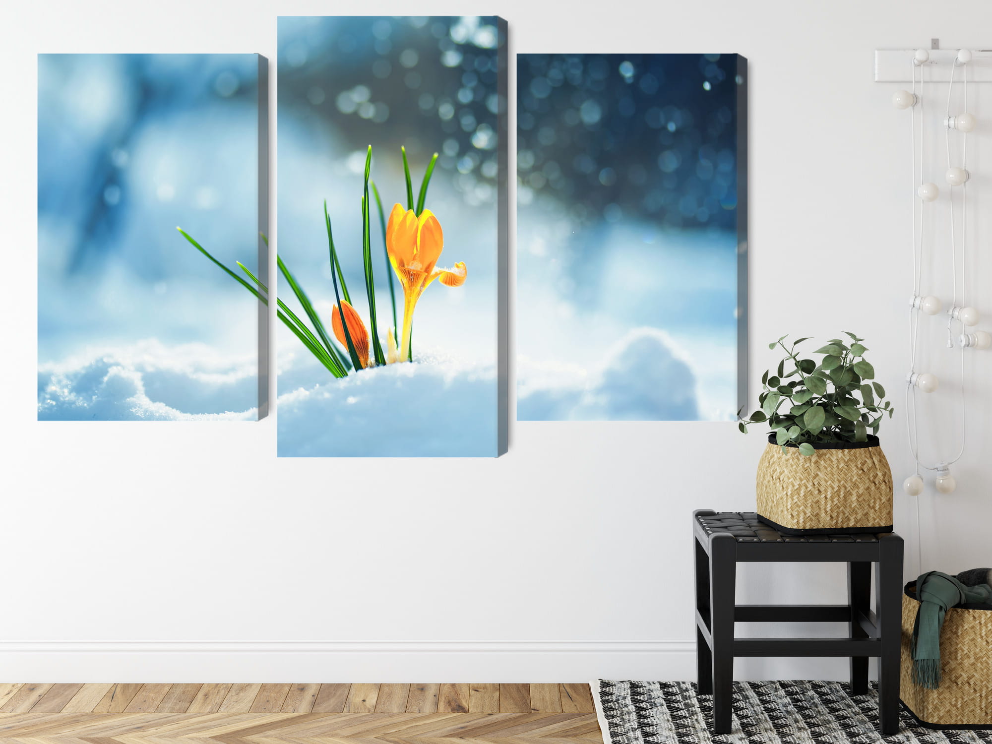 Obraz Wieloczęściowy Żółte Krokusy Przebijające Się Przez Śnieg