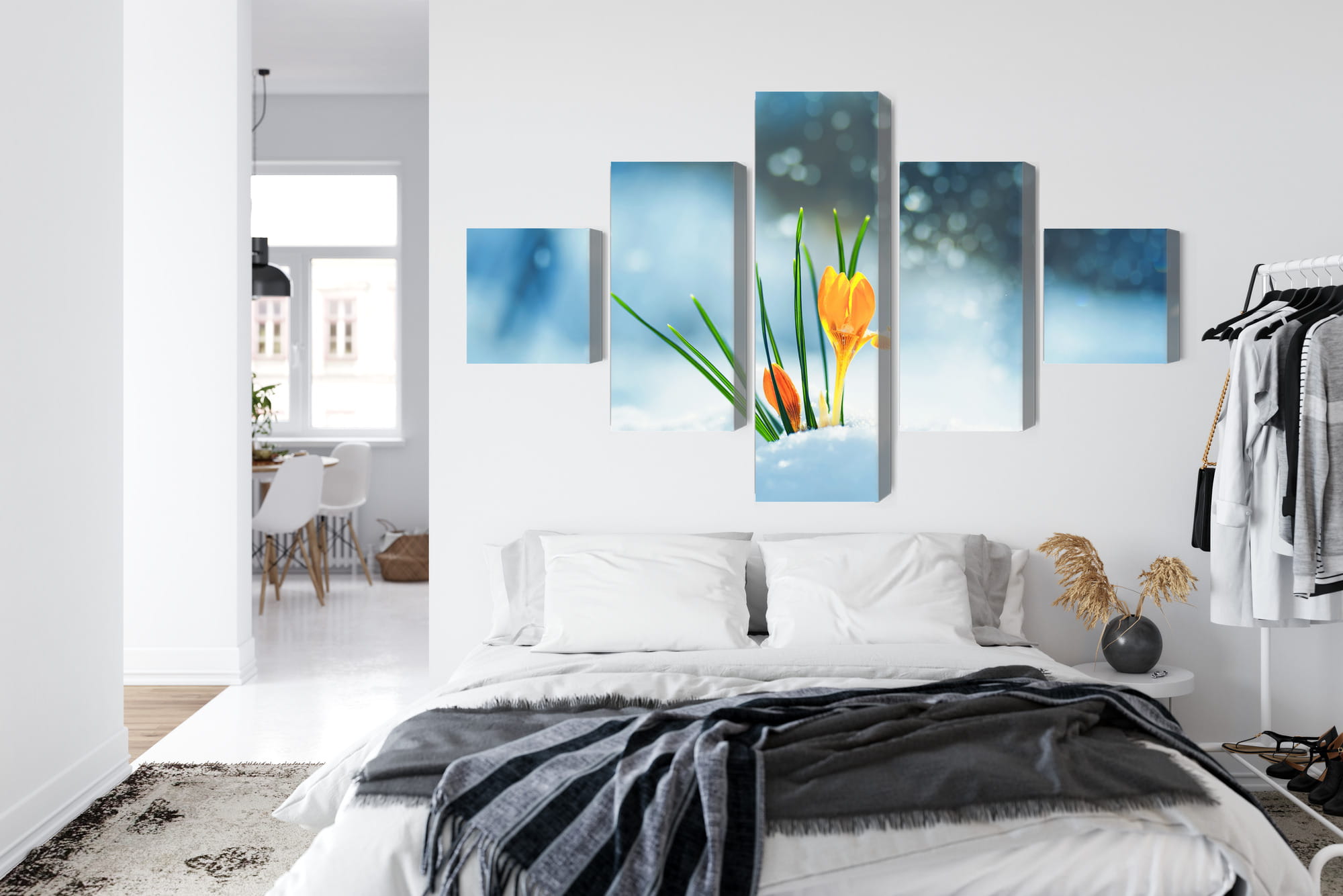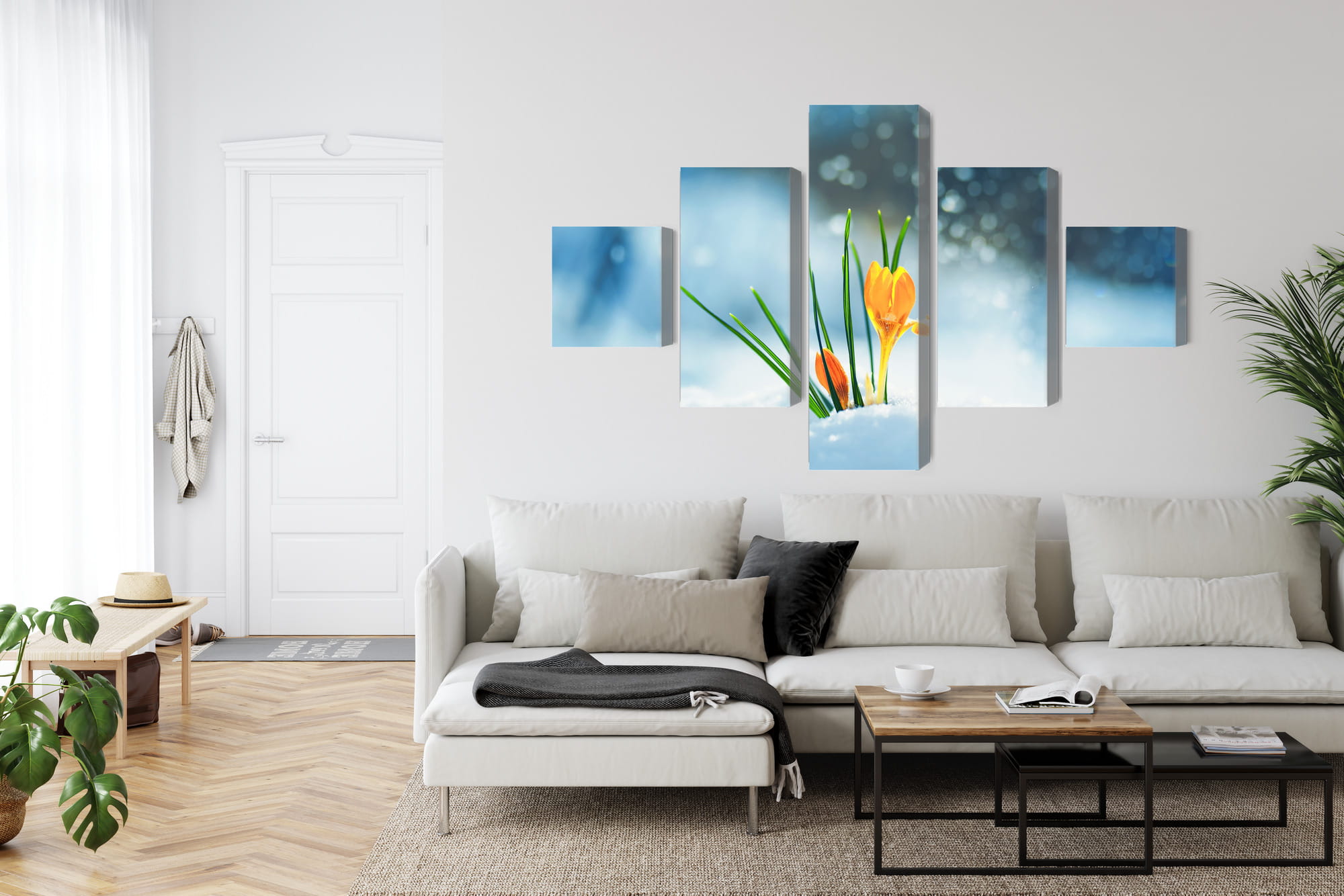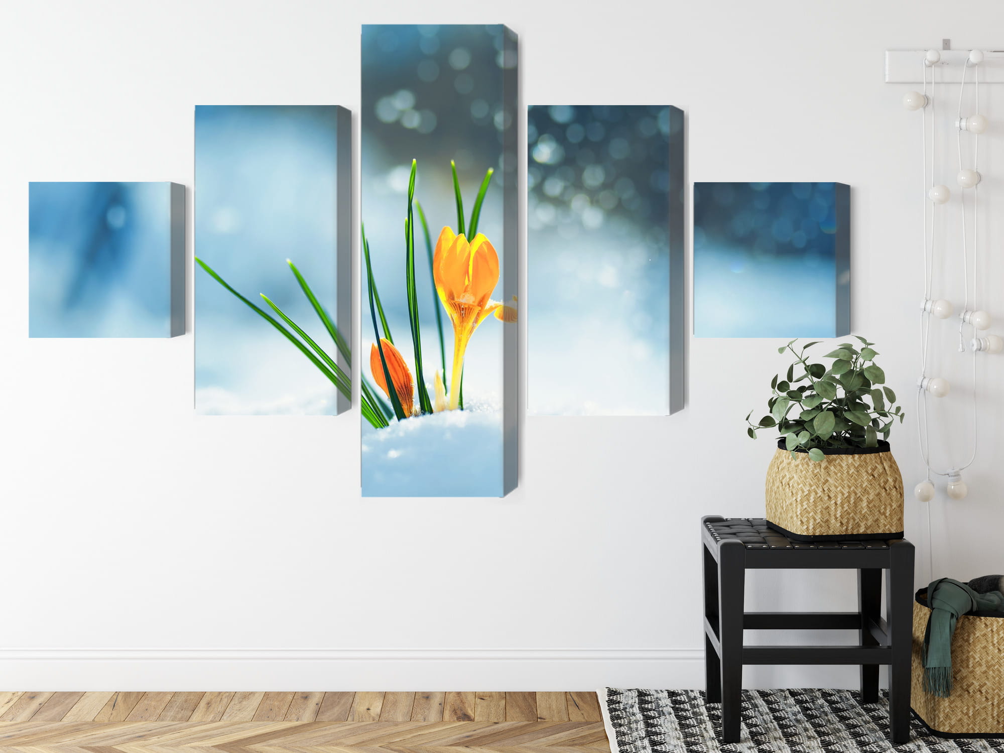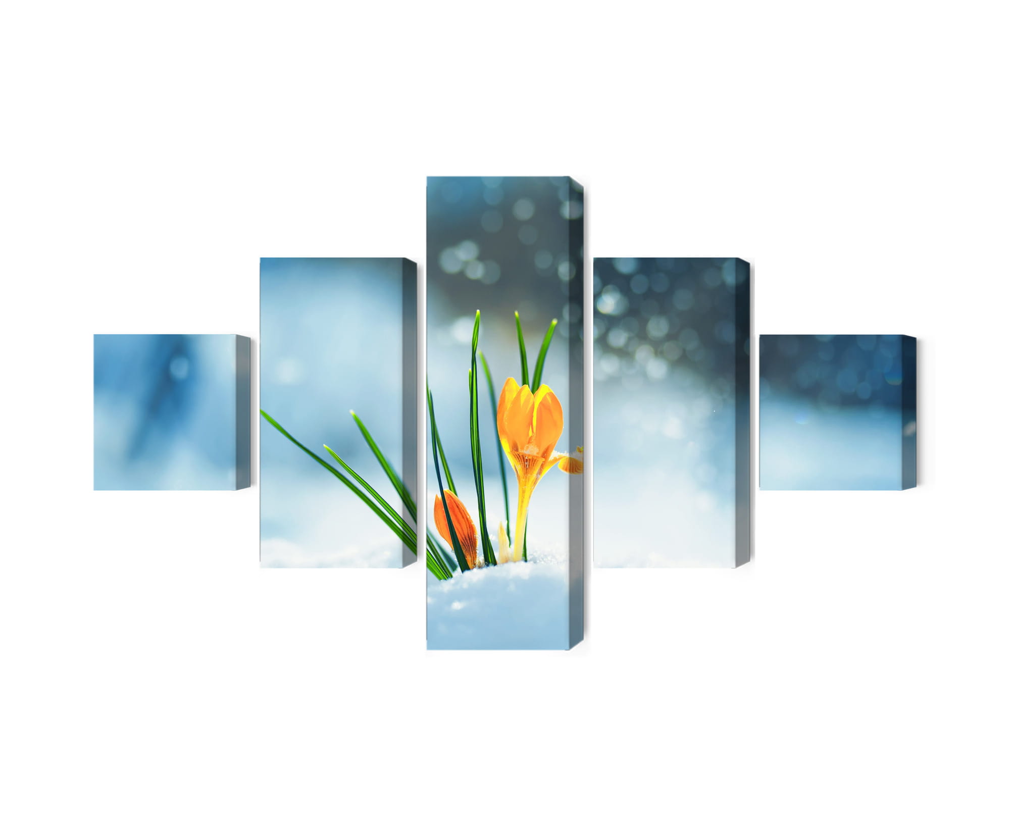Obraz Wieloczęściowy Żółte Krokusy Przebijające Się Przez Śnieg