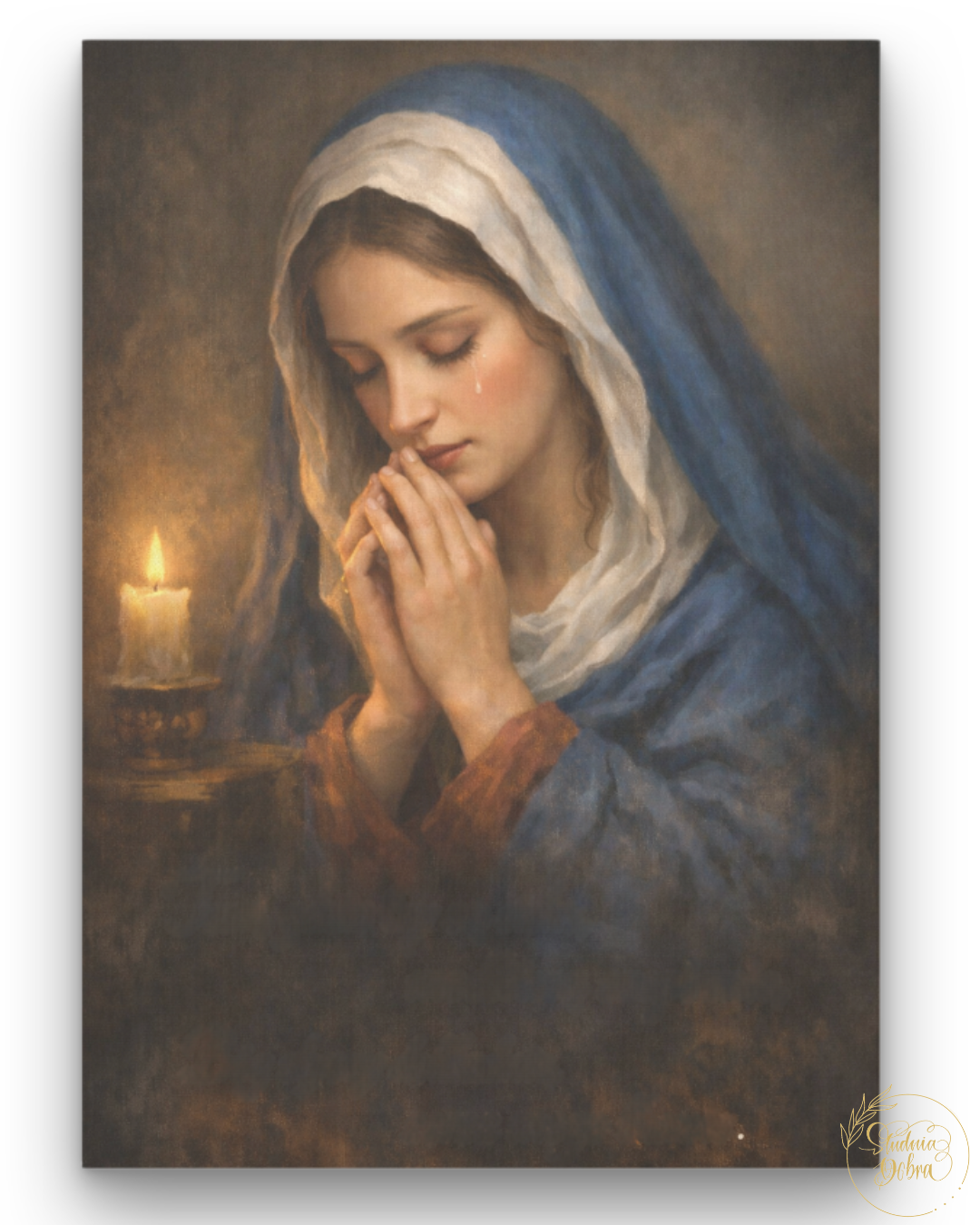 Idealny jako prezent na różne okazje. Przedstawia scenę Maryi zatopionej w modlitwie.