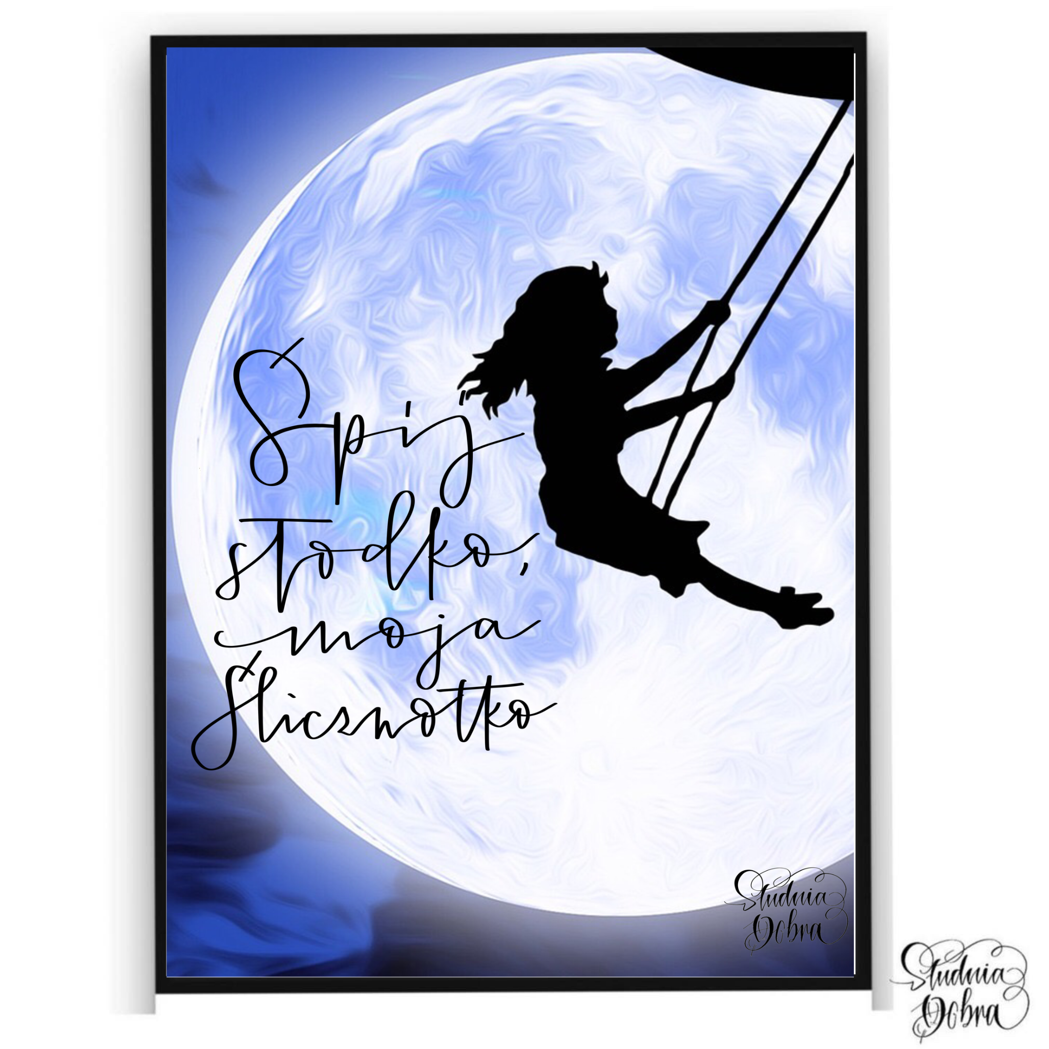 Idealny jako prezent na różne okazje. Przedstawia słowa "Śpij słodko, moja Ślicznotko", napisane w ozdobnej, nowoczesnej formie wraz z grafiką.