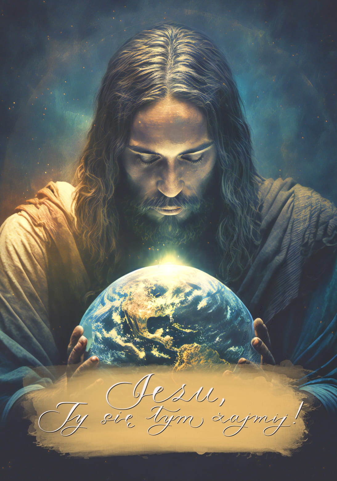 Idealny jako prezent na różne okazje. Przedstawia wizerunek Jezusa obejmującego kulę ziemską, wraz ze słowami ks. Dolindo: "Jezu, Ty się tym zajmij!".