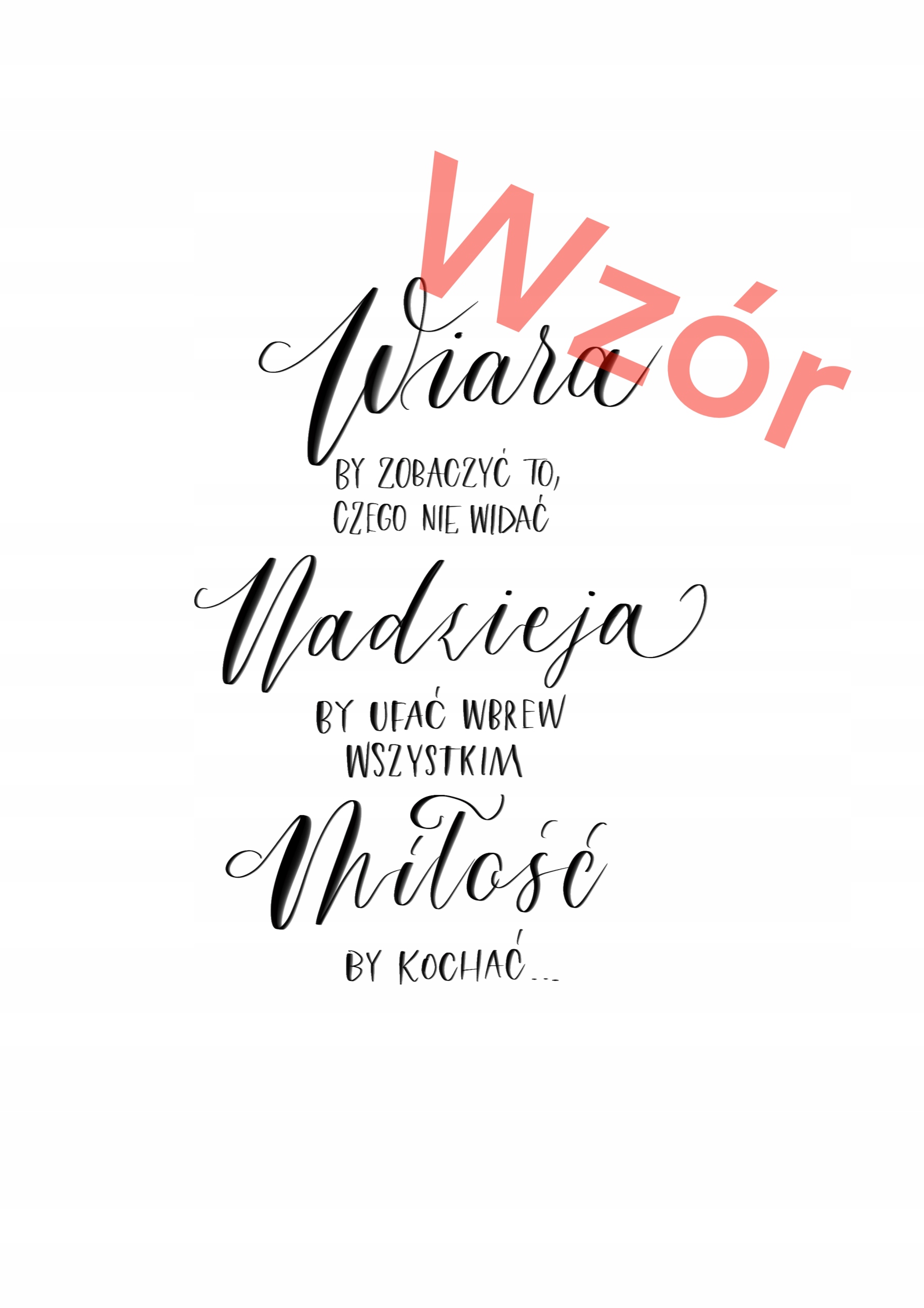 Idealny jako prezent na każda okazję. Plakat przedstawia cytat własny, opisujący wiarę, nadzieję i miłość.