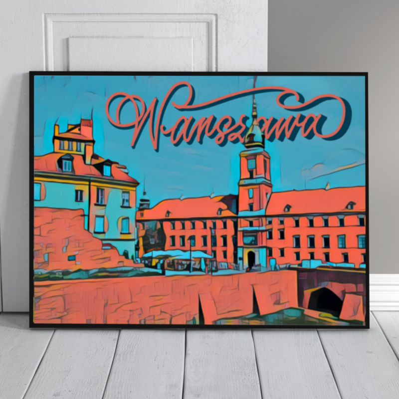 Idealny jako prezent na różne okazje. Przedstawia artystyczny obraz Warszawy wraz z ozdobnym napisem.